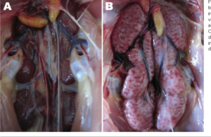 التسمين والبياض حيث يسبب خسائر كبيرة و خصوصا في الجوائح الكبيرة و العترات المتغايرة التي تسبب اضرار كلوية بالغة في القطعان المصابة.