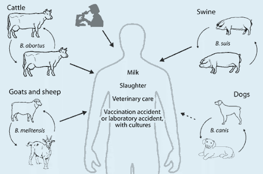 البروسيلا: مرض حيواني بالدرجة الأولى ويصيب الإنسان تحت ظروف معينه و يصيب مجموعه كبيره من الحيوانات بدء من القوارض.
