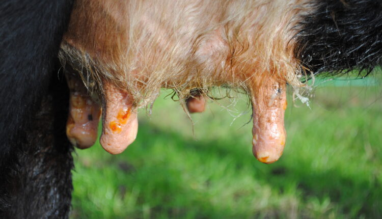 - التنظيف الجيد للضرع و الحلمات المصابة باستخدام قماش معقم باليود و مخصص للبقرة المصابة فقط.