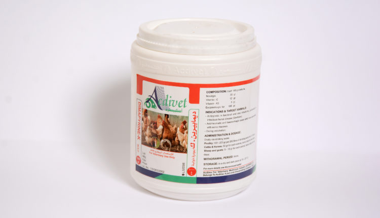 - الدواجن: 100 غ – 200 غ / 200 ليتر ماء شرب و لمدة 3-5 أيام.